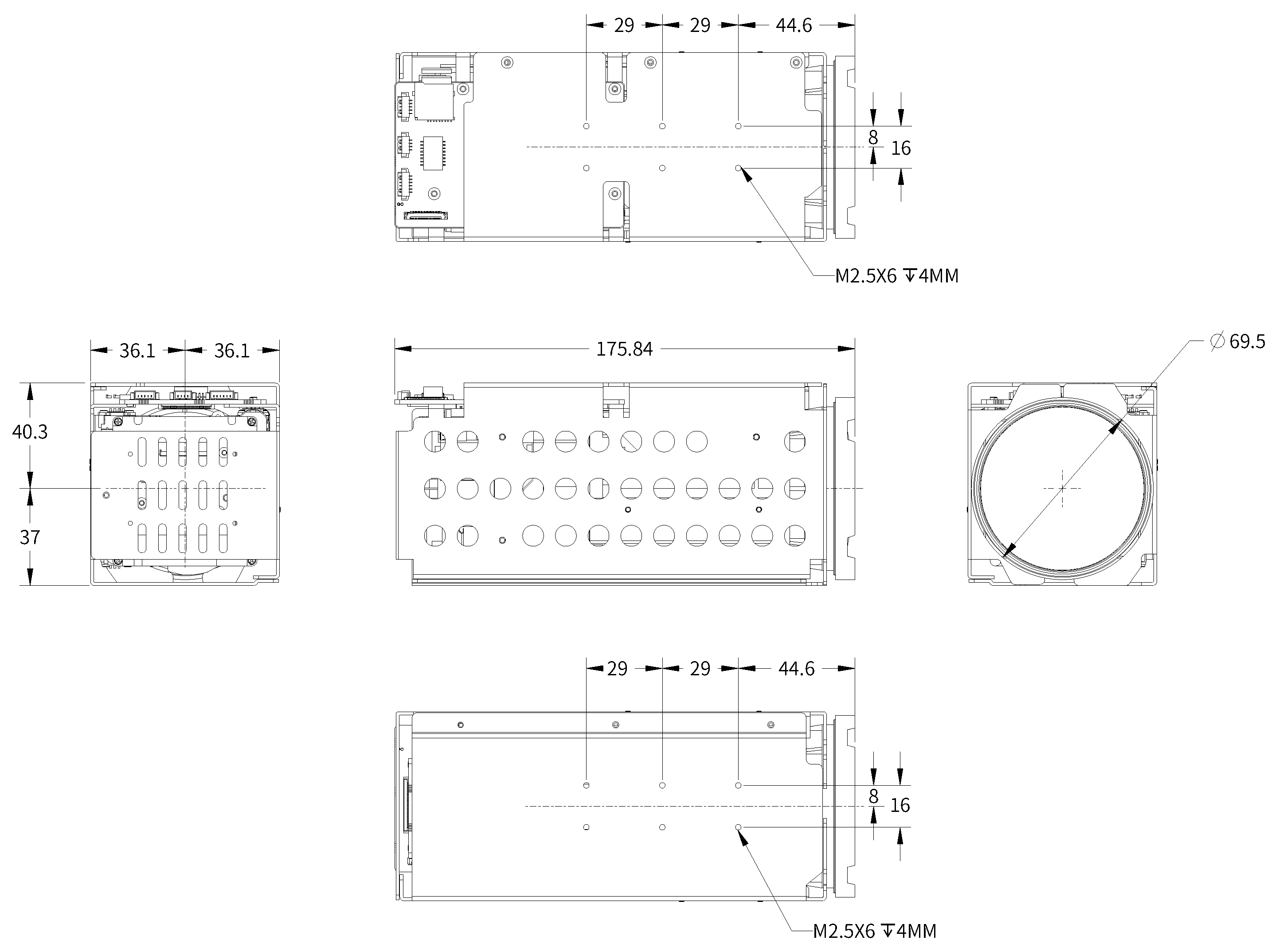 Puerto Ethernet de 4PIN, puerto de 6pin Power & UART, puerto de audio de 5pin. 30pin mipi |